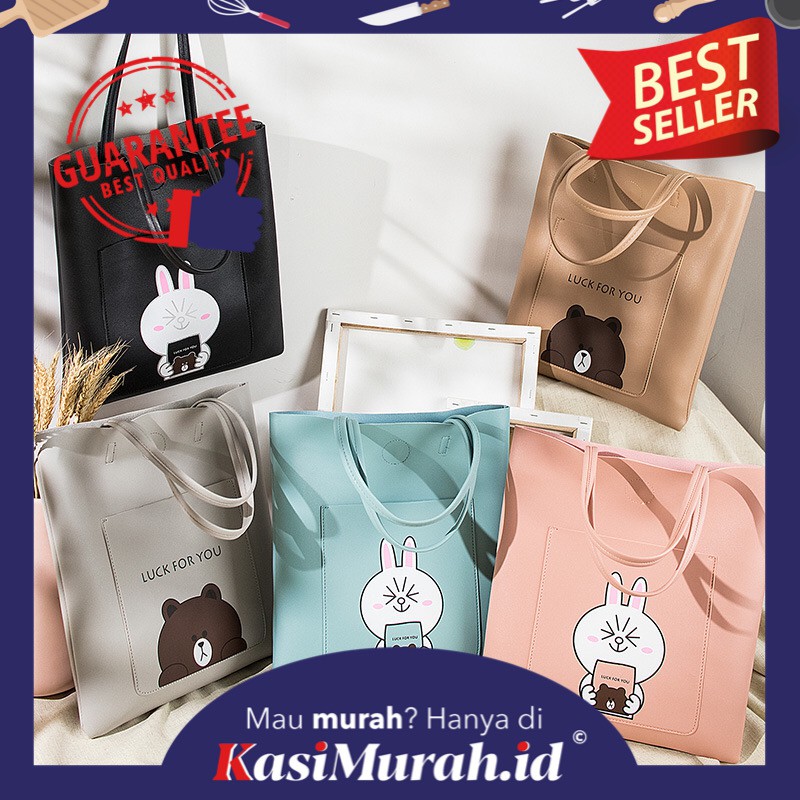 Kasimurah K258 Tote Bag Wanita Line Friends Brown And Cony Tas
