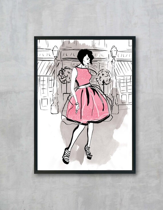 Penelope Pink Dress Fashion Illustration Drawing Print Paris Etsy